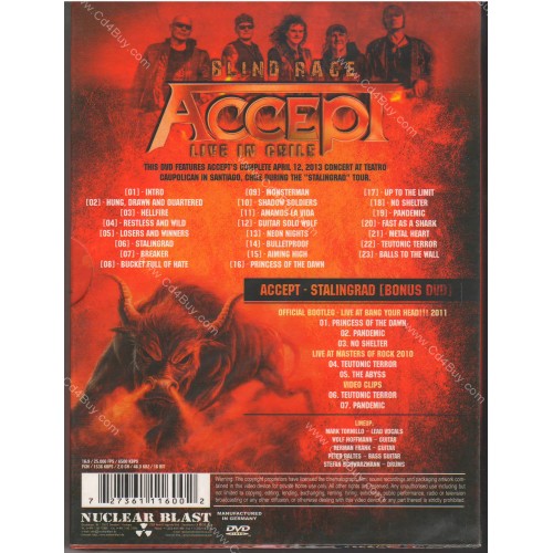 Tags: Accept, Blind Rage Live in Chile, 2 DVD Set